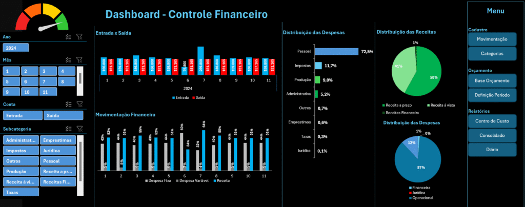 - Dashboard Financeiro: fluxo de caixa, despesas recorrentes e projeções futuras.