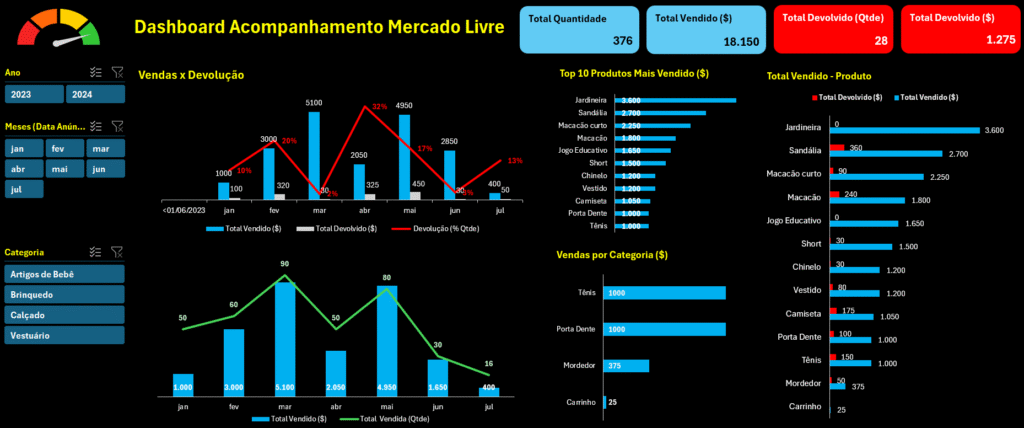 Dashboard de Mercado Livre: especifico para um cliente do Mercado Livre para acompanhar as vendas ativas e cancelamentos.